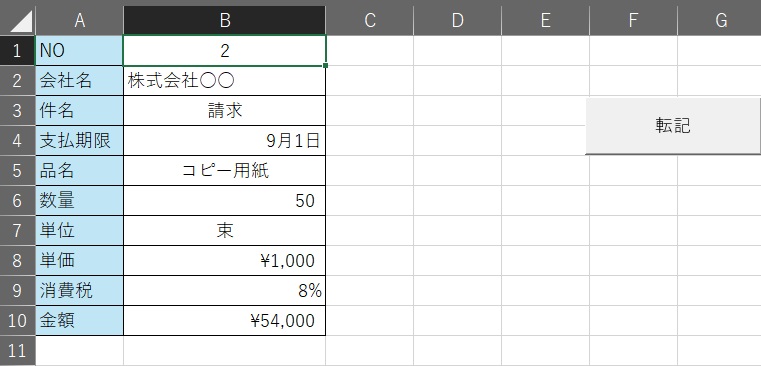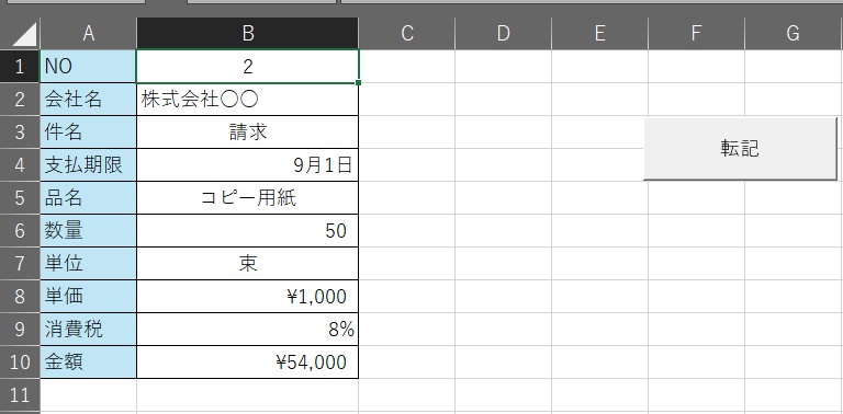 でデータ入力後(ダミーは上書き)、「転記」ボタンを押すと