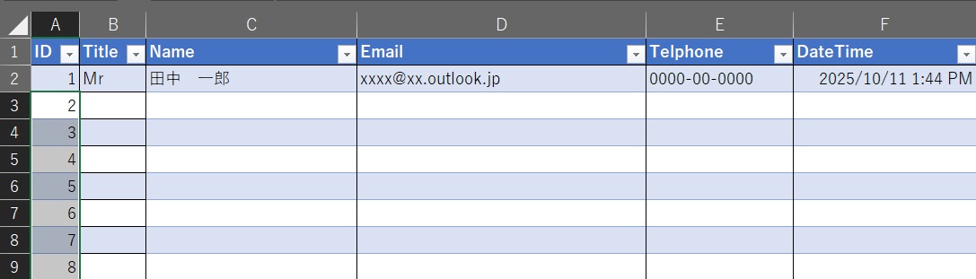 と下の枠内に保存されます。と同時にデータベースDataシート内に転記されます。